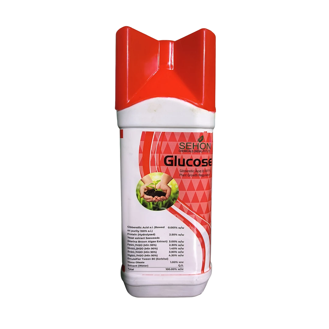 Glucose is a high-efficiency plant growth regulator formulated with Gibberellic Acid, known for promoting rapid and robust plant development. It enhances cellular growth, elongation, and overall plant vigor, making it an essential input for increasing agricultural productivity and crop quality.